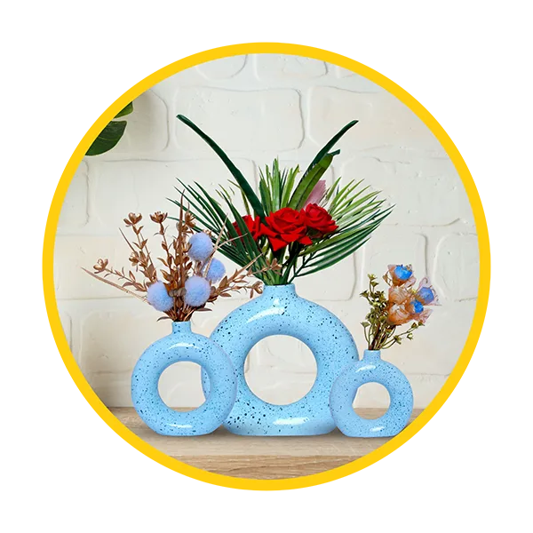 Donut-Shaped Flower Vases for Home Decor, Set of 3 (Sky Blue) Polyresin – 8 Inch