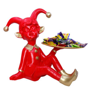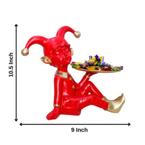 Add a playful charm to your décor with this 10.5-inch red jester figurine holding a stylish serving tray. Perfect for storing candies, keys, jewelry, or small accessories, this artistic sculpture combines fun and functionality. The vibrant red and gold finish makes it a unique statement piece for living rooms, offices, or dining spaces. Whether as a decorative organizer or a delightful gift, this jester figurine adds a whimsical touch to any setting.