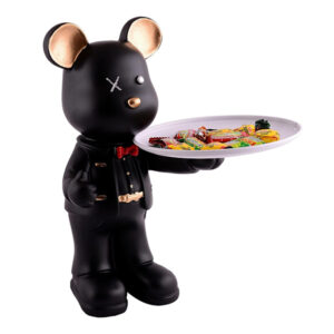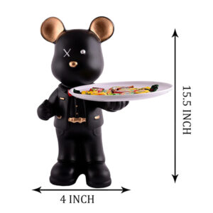 Add a modern and stylish touch to your home with this 15.5-inch black bear butler statue. Featuring a sleek black finish with gold accents, this premium resin sculpture doubles as a functional tray holder. Whether used to hold candies, jewelry, keys, or other small essentials, this elegant bear figure makes a perfect statement piece for any room.