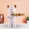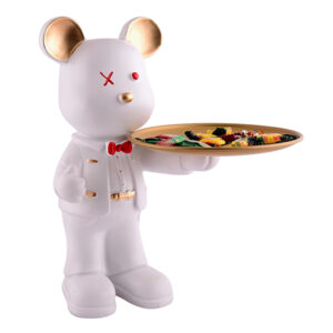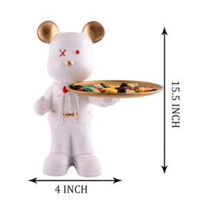 Upgrade your home décor with this stunning 15.5-inch white resin bear tray. Designed with gold accents and a stylish bow tie, this decorative bear serves as a functional organizer for candy, keys, jewelry, or small essentials. Its modern design, featuring a unique red eye detail, makes it a statement piece for any room, from living rooms to offices.