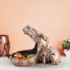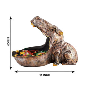 Add a touch of charm and whimsy to your space with this 11-inch bronze hippo candy dish. Designed with intricate details and golden accents, the open-mouth design is perfect for holding sweets, snacks, coins, or keys. Made from durable resin, this eye-catching piece works great as both a practical tray and a decorative sculpture for home or office settings.