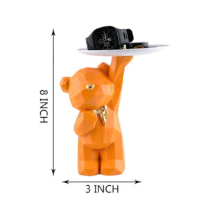 Enhance your home or office décor with this stylish 8-inch geometric bear tray holder. Crafted from high-quality resin with a striking polygonal design, this eye-catching piece is perfect for organizing small essentials like watches, keys, jewelry, or candies. The vibrant orange finish with gold accents adds a pop of color and elegance to any space.
