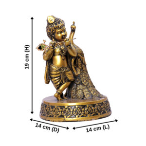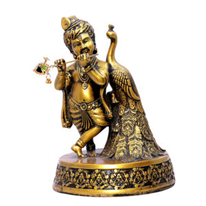 Antique Bal Krishna with Peacock Idol Showpiece (Antique Gold) Polyresin – 7.5 Inch