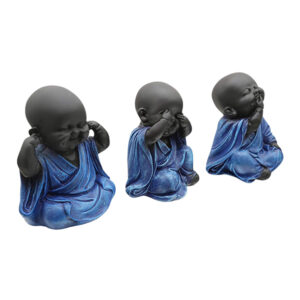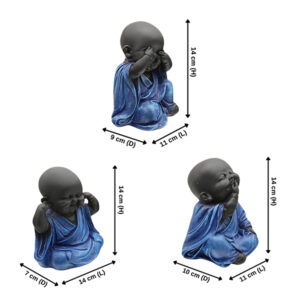 Baby Monk Buddha Idol Showpiece for Home Decor, Set of 3 (Blue & Black) Marble – 5.5 Inch quantity