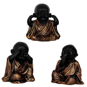 Baby Monk Buddha Idol Showpiece for Home Decor, Set of 3 (Golden & Black) Polyresin – 5.5 Inch