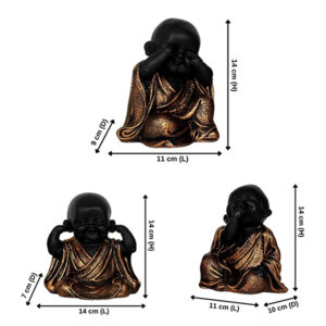 / Baby Monk Buddha Idol Showpiece for Home Decor, Set of 3 (Copper & Black) Polyresin – 5.5 Inch