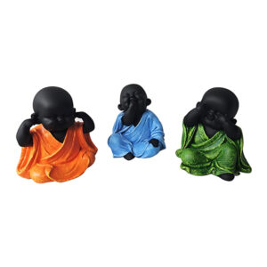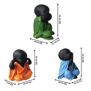 / Baby Monk Buddha Idol Showpiece for Home Decor, Set of 3 (Multicolor) Marble – 5.5 Inch