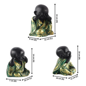 / Baby Monk Buddha Idol Showpiece for Home Decor, Set of 3 (Multicolor) Polyresin – 5.5 Inch