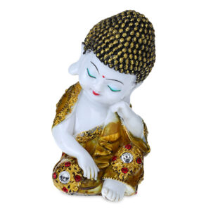 Be the first to review “Baby Monk Buddha Showpiece for Home Decor (Golden & White) Marble – 7 Inch”