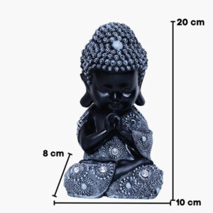 Baby Monk Buddha Showpiece for Home Decor (Grey & Black) Polyresin – 8 Inch