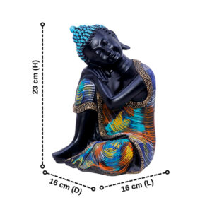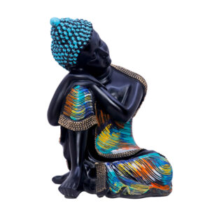 Elevate your home or meditation space with this striking Black Resting Buddha Statue. Featuring a deep black finish with vibrant blue, orange, and gold accents, this beautifully crafted piece symbolizes peace, mindfulness, and serenity. The intricate detailing and rich colors make it an eye-catching decor item for homes, offices, yoga studios, and spiritual spaces. Whether for personal meditation or as a thoughtful gift, this artistic sculpture brings harmony and style to any setting.