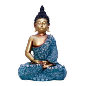 Blue & Gold Meditating Buddha Statue – Spiritual Resin Sculpture for Home, Office & Yoga Spaces (L-22cm,B-12cm,H-34cm)
