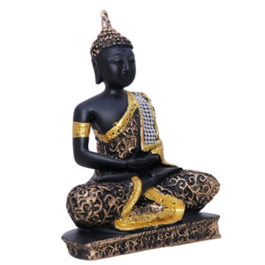Add a divine touch to your space with this serene Buddha Idol in elegant black and gold. Embellished with intricate detailing and shimmering accents, it brings calm and sophistication to any décor. With its meditative pose and symbolic styling, this 16 cm resin statue is perfect for homes, offices, yoga spaces, or as a meaningful gift.