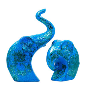Blue & Gold Polyresin Elephant Figurines – Set of 2 (H- 21 & 12.5 cm)