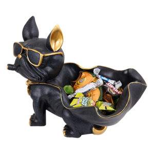 Bring edgy elegance to your space with this Cool French Bulldog Candy Dish. Measuring 9 inches in length and 8 inches tall, this bold black pup sports gold-trimmed sunglasses, a cigar, and a sleek cape-shaped tray on its back—perfect for storing candies, keys, or jewelry. A conversation-starting décor piece for your living room, office, or entryway!