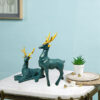 Bring home elegance with this Dark Green Deer Couple Showpiece. Designed with a bold dark green finish and radiant golden antlers, this artistic figurine adds a refined modern touch to any space. A perfect statement piece for your living room or office.