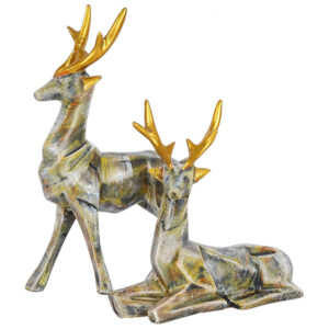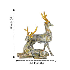 Add a touch of rustic charm and serene elegance to your home with this 8-inch tall Deer Couple Resin Showpiece. Expertly crafted with intricate details, this decorative figurine captures the grace and beauty of nature. Featuring two majestic deer—one seated and one standing—this piece is perfect for lovers of wildlife-inspired decor. The golden antlers contrast beautifully with the textured, earthy-toned bodies, creating a striking visual appeal that blends seamlessly with both modern and traditional interiors.