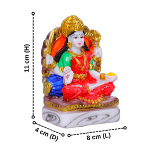 Enhance your spiritual space with this intricately designed Goddess idol, representing prosperity, wisdom, and positivity. Crafted from high-quality resin, this beautifully painted figurine features vibrant colors with golden accents, making it an eye-catching addition to your home temple, puja room, or office. Its compact size ensures it fits perfectly in any space, bringing blessings and elegance to your décor.