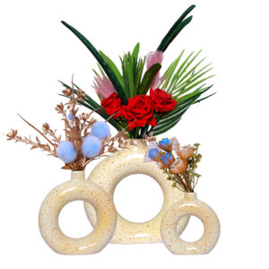 Donut-Shaped Flower Vases for Home Decor, Set of 3 (Cream) Polyresin – 8 Inch