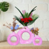 / Donut-Shaped Flower Vases for Home Decor, Set of 3 (Pink) Polyresin – 8 Inch