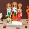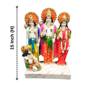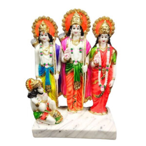 The Ram Darbar idol from GW Creations is an exquisite representation of divine harmony and familial devotion, meticulously crafted from high-quality marble. This 15-inch masterpiece beautifully captures the essence of Lord Rama, Sita, Lakshman, and Hanuman, making it a perfect addition to any home temple. The idol’s intricate detailing and smooth finish reflect the exceptional skill of talented artisans, ensuring it brings a sense of peace and inspiration to any home or spiritual setting.