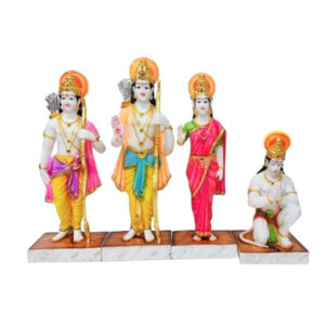 The Ram Darbar idol from GW Creations is an exquisite representation of divine harmony and familial devotion, meticulously crafted from high-quality marble. This 24-inch masterpiece beautifully captures the essence of Lord Rama, Sita, Lakshman, and Hanuman, making it a perfect addition to any home temple. The idol’s intricate detailing and smooth finish reflect the exceptional skill of talented artisans, ensuring it brings a sense of peace and inspiration to any home or spiritual setting.