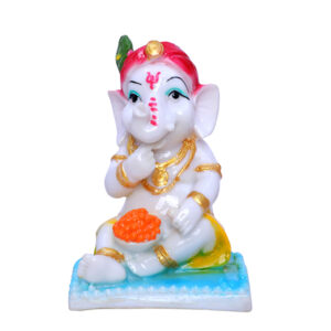 Ganesh Idol Showpiece for Home Decor (Multicolor) Marble – 5.5 Inch