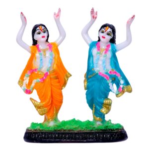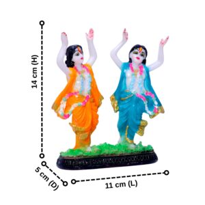 Gaura Nitai Idol Showpiece for Home Decor (Orange & Blue) Marble – 5.5 Inch