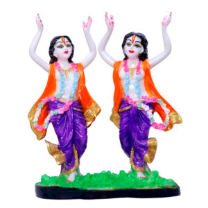 Gaura Nitai Idol Showpiece for Home Decor (Orange & Purple) Marble – 10.5 Inch