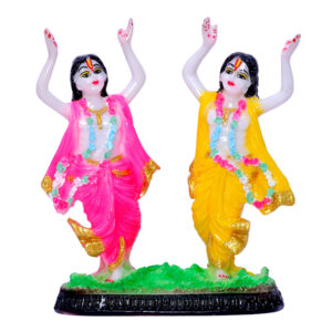 Gaura Nitai Idol Showpiece for Home Decor (Pink & Yellow) Marble – 5.5 Inch