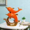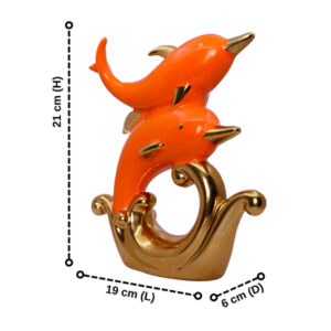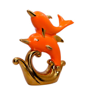 Add playful elegance to your home with this striking Orange Dolphin Pair Figurine, capturing two dolphins in mid-leap above stylized golden waves. Finished in a glossy orange with metallic gold highlights, this eye-catching piece is sure to add a splash of charm and motion to your space.
