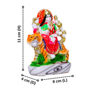 Bring the divine energy of Goddess Durga into your home with this beautifully crafted resin idol. This intricately designed statue showcases the goddess riding her majestic tiger, symbolizing power, protection, and strength. The vibrant colors and golden accents add a touch of elegance, making it a perfect addition to your puja room, office, or as a thoughtful gift.
