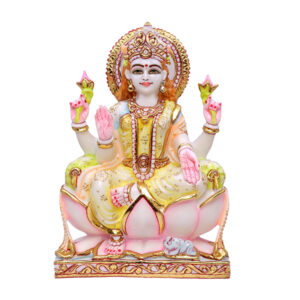 GW Creations offers a marble Goddess Maa Laxmi showpiece for home temples, a beautiful addition to any sacred space.