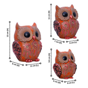 Enhance your home décor with this exquisite handcrafted owl figurine set, featuring three different sizes. Designed with intricate detailing, a vintage grey finish, and gold accents, these artistic owl sculptures bring a sophisticated and mystical charm to any space. Perfect for living rooms, offices, bookshelves, or gifting to owl lovers and art enthusiasts.