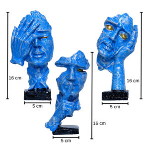Human Faces Showpiece for Home Decor, Set of 3 (Blue) Polyresin – 6 Inch quantity