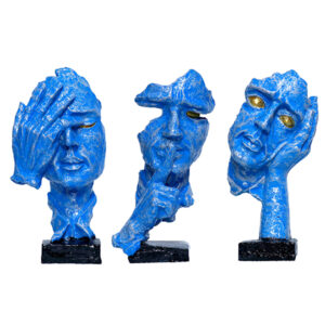 Human Faces Showpiece for Home Decor, Set of 3 (Blue) Polyresin – 6 Inch