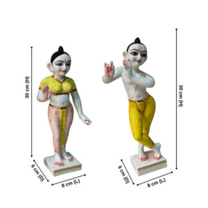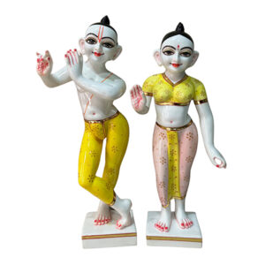 The serene expressions on Radha and Krishna’s faces and the delicate embellishments bring peace and divinity to any space.