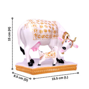 / Kamdhenu Cow & Calf Idol Showpiece for Home Decor (Muticolor) Marble – 6 Inch