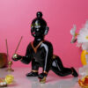/ Laddu Gopal Krishna Idol Showpiece for Home Decor, Golden Foil Work (Black) Marble – 9 Inch