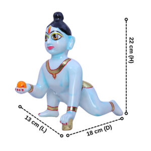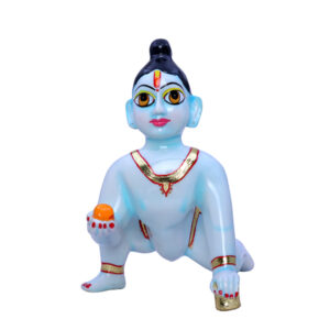 / Laddu Gopal Krishna Idol Showpiece for Home Decor, Golden Foil Work (Blue) Marble – 9 Inch