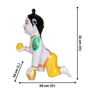 / Laddu Gopal Krishna Idol Showpiece for Home Decor (Yellow & Green) Marble – 13 Inch