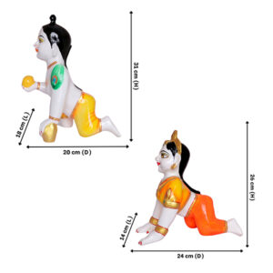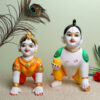 / Laddu Gopal with Radha Rani Idol Showpiece for Home Decor (Orange) Marble – 13 Inch