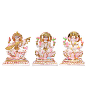 • This elegant set showcases the divine trio of Laxmi, Ganesh, and Saraswati, meticulously sculpted from premium marble by the skilled artisans of GW Creations.
