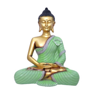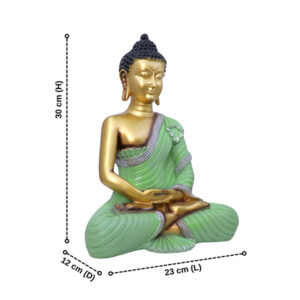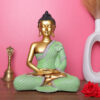 Lord Buddha Idol Showpiece for Home Decor (Green & Golden) Polyresin – 12 Inch