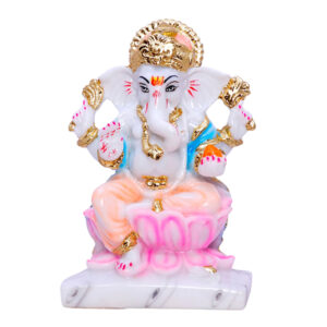 This stunning Lord Ganesh idol from GW Creations is a beautiful representation of wisdom and new beginnings, expertly crafted from high-quality marble with golden foil work. Standing at 7 inches in height, it makes an ideal addition to any home & office, offering a touch of elegance and spirituality. The idol features intricate detailing that is both captivating and inspiring, making it a cherished piece for any home or altar.