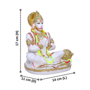 This exquisite Lord Hanuman Idol is a testament to devotion and craftsmanship, meticulously crafted from high-quality polyresin by GW Creations.