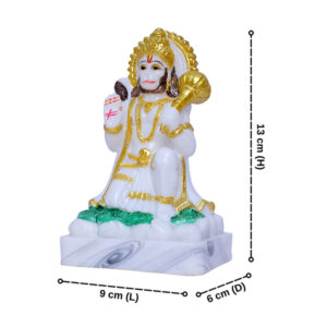 Lord Hanuman Idol Showpiece (White) Marble – 6 Inch