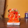 Lord Hanuman Ji Idol | Orange & Golden Decorative Religious Showpiece | Marble Base | 9.5 cm Height
