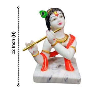 The Lord Krishna idol showpiece from GW Creations is an exquisite masterpiece that embodies divine charm, grace, and spiritual wisdom, meticulously crafted from high-quality marble. Standing majestically at 12 inches, this stunning piece is adorned with a luxurious glossy finish that enhances its regal appearance, making it a perfect addition to home and office spaces. The idol beautifully captures the serene and enchanting essence of Lord Krishna, known for his divine plays and profound teachings, making it a cherished centerpiece that inspires devotion and tranquility. The intricate detailing and polished finish reflect the exceptional craftsmanship of skilled artisans, ensuring it stands out as a distinguished addition to any environment.