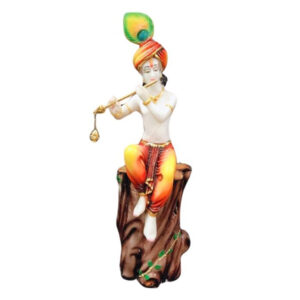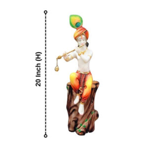 The Krishna Sitting on a Tree idol showpiece from GW Creations is an exquisite masterpiece that embodies divine charm, grace, and spiritual wisdom, meticulously crafted from high-quality marble. Standing majestically at 20 inches, this stunning piece is adorned with a luxurious glossy finish that enhances its regal appearance, making it a perfect addition to home and office spaces. The idol beautifully captures the serene and enchanting essence of Krishna, known for his divine plays and profound teachings, making it a cherished centerpiece that inspires devotion and tranquility. The intricate detailing and polished finish reflect the exceptional craftsmanship of skilled artisans, ensuring it stands out as a distinguished addition to any environment.